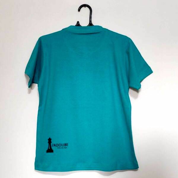 Estampa frontal em serigrafia: a estampa traz uma menina enxadrista simpática com as peças de xadrez à sua frente.